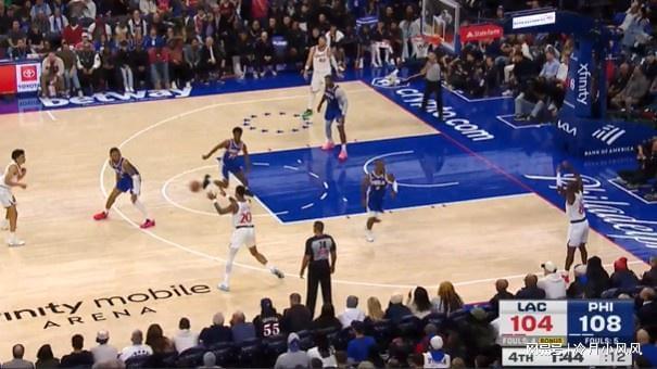 比赛还剩1分44秒时,76人中锋德拉蒙德在身边一米范围内没有明确防守者的情况下在禁区待的过久,应该吹罚防守三秒违例,快船得到一次罚球机会。